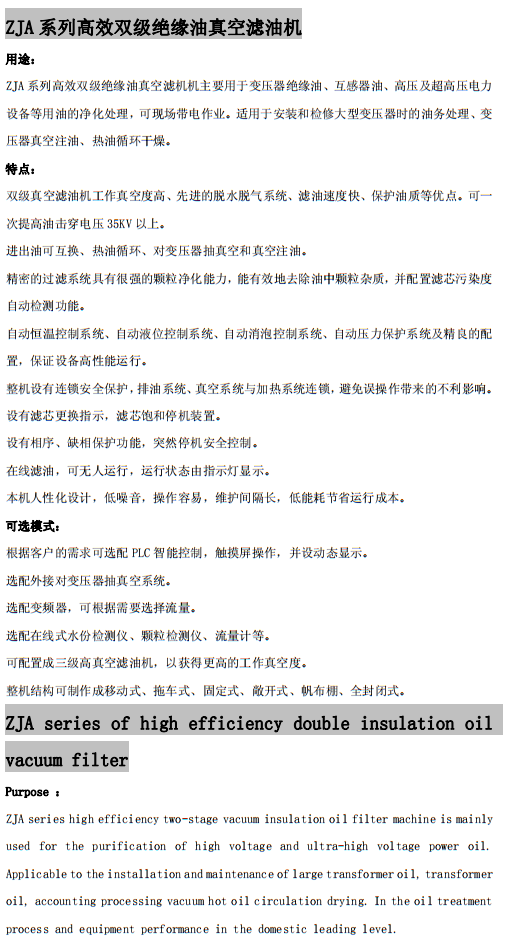 ZJA系列高效雙級(jí)絕緣油真空濾油機(jī)