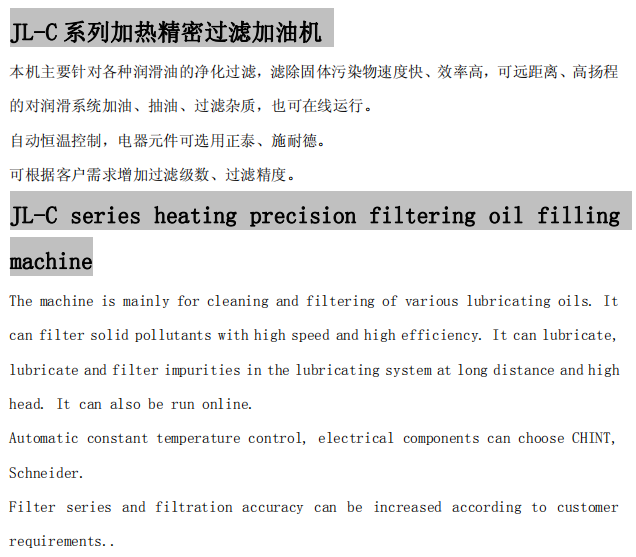 JL-C系列加熱精密過濾加油機(jī)