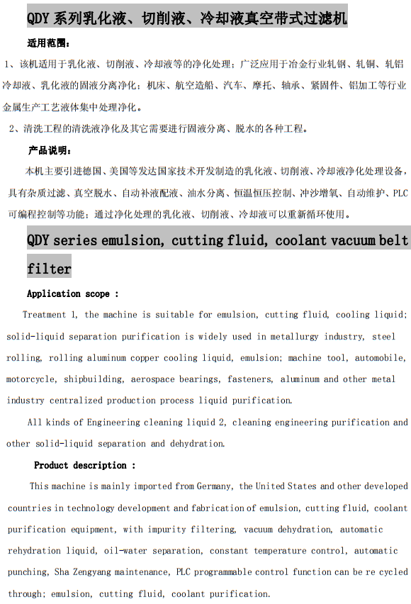 QDY系列乳化液、切削液、冷卻液真空帶式過濾機(jī)